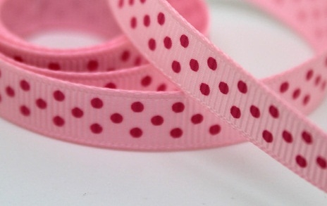 Лента репсовая 1см розовая в ярко-розовый горохУвеличить