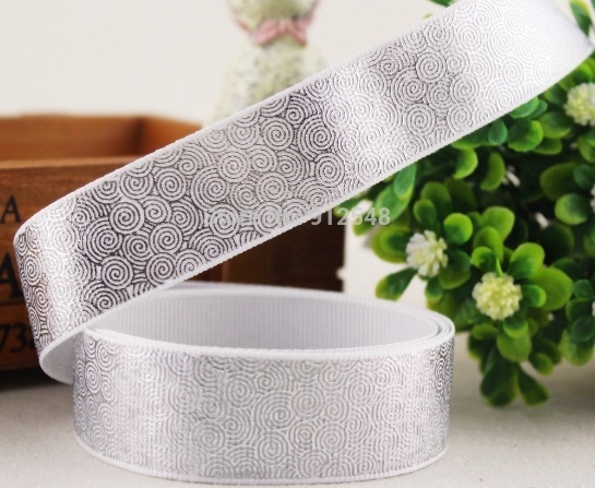Лента репсовая 23мм белая с серебристой спиральюУвеличить