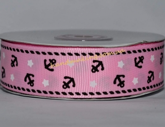 Лента репсовая 25мм розовая с якорямиУвеличить