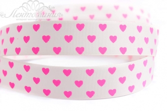Лента репсовая 25мм кремовая в розовое сердцеУвеличить
