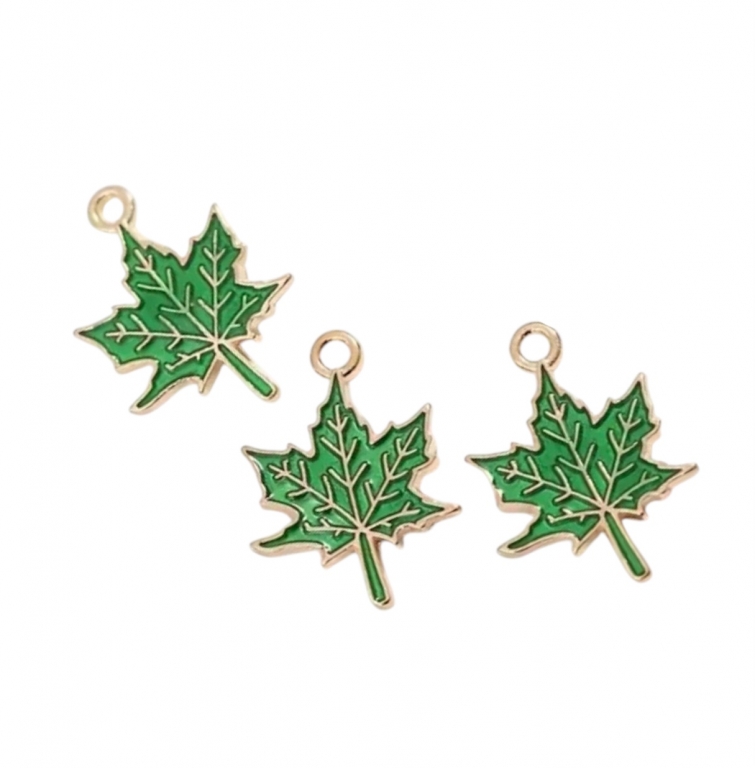 Підвіска металева з емаллю Кленовий лист зелений 18х14ммУвеличить