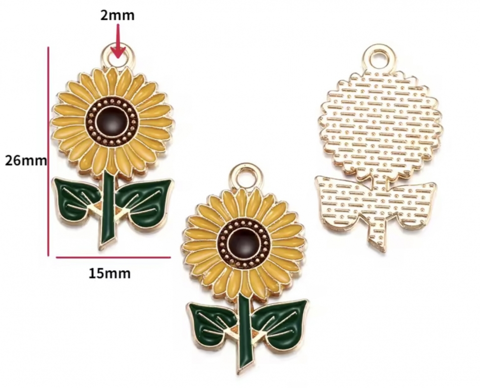 Підвіска металева з емаллю Соняшник великий 26х15ммУвеличить