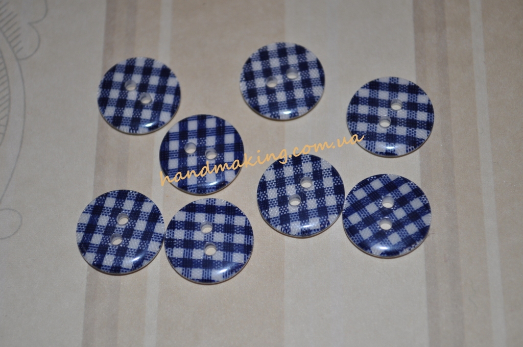 Пуговица пластиковая в клетку синяя 15ммУвеличить